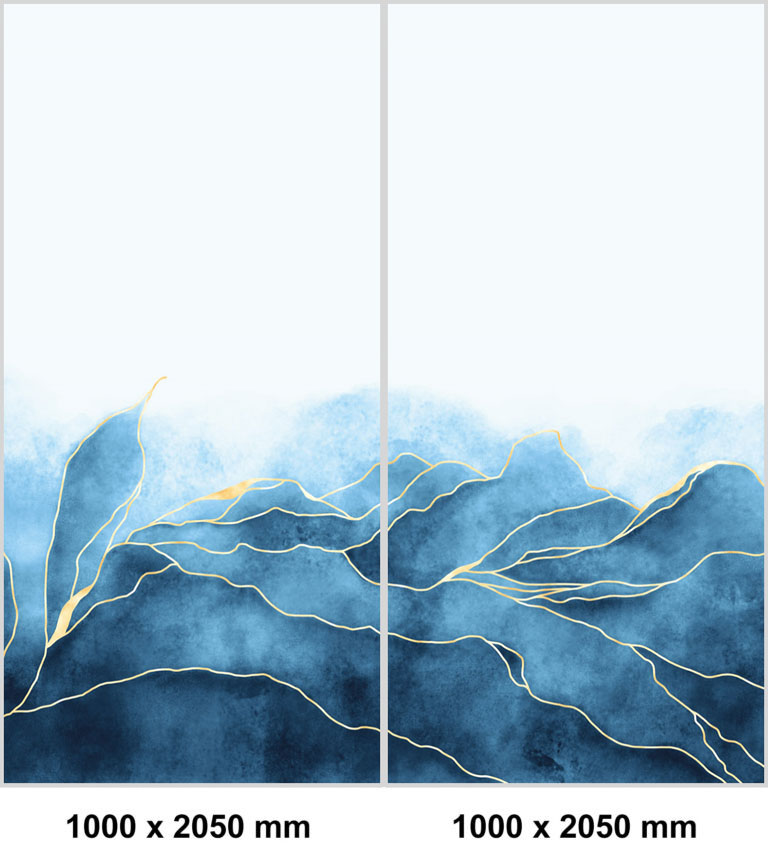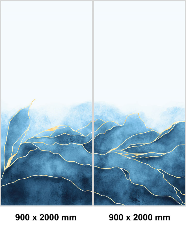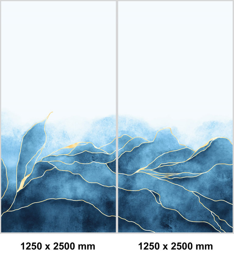 set de esquina panel de ducha sin juntas ”Abstrakte Landschaft Blau-Gold” EXK_05_21A