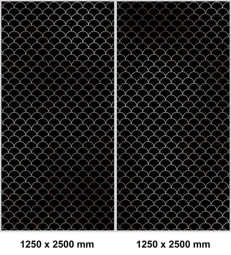 set de esquina panel de ducha sin juntas ”Art-Déco Schuppenmuster Schwarz-Gold” EXK_10_21B