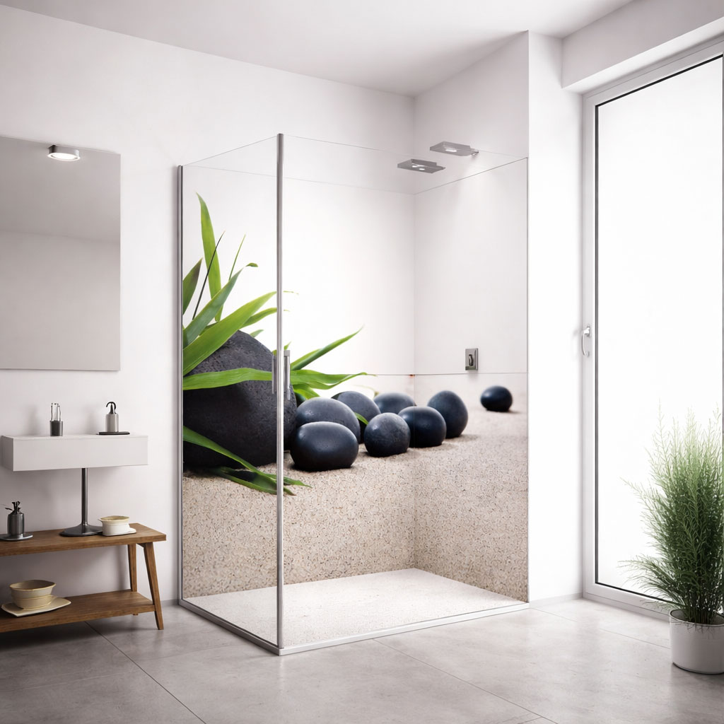 set de esquina panel de ducha sin juntas ”Zen Steine im Sand” ZEN_17_19